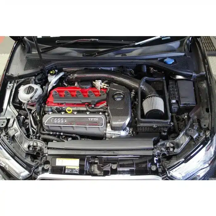 034Motorsport’s engineers spent extensive effort to develop a complete cold air intake solution for the first generation 8V Audi RS3 (with iron block) that yields horsepower and torque gains over the well-designed factory airbox. During the development process, many iterations were designed, prototyped, and tested, which resulted in this beautifully-manufactured Carbon Fiber Cold Air Intake System.