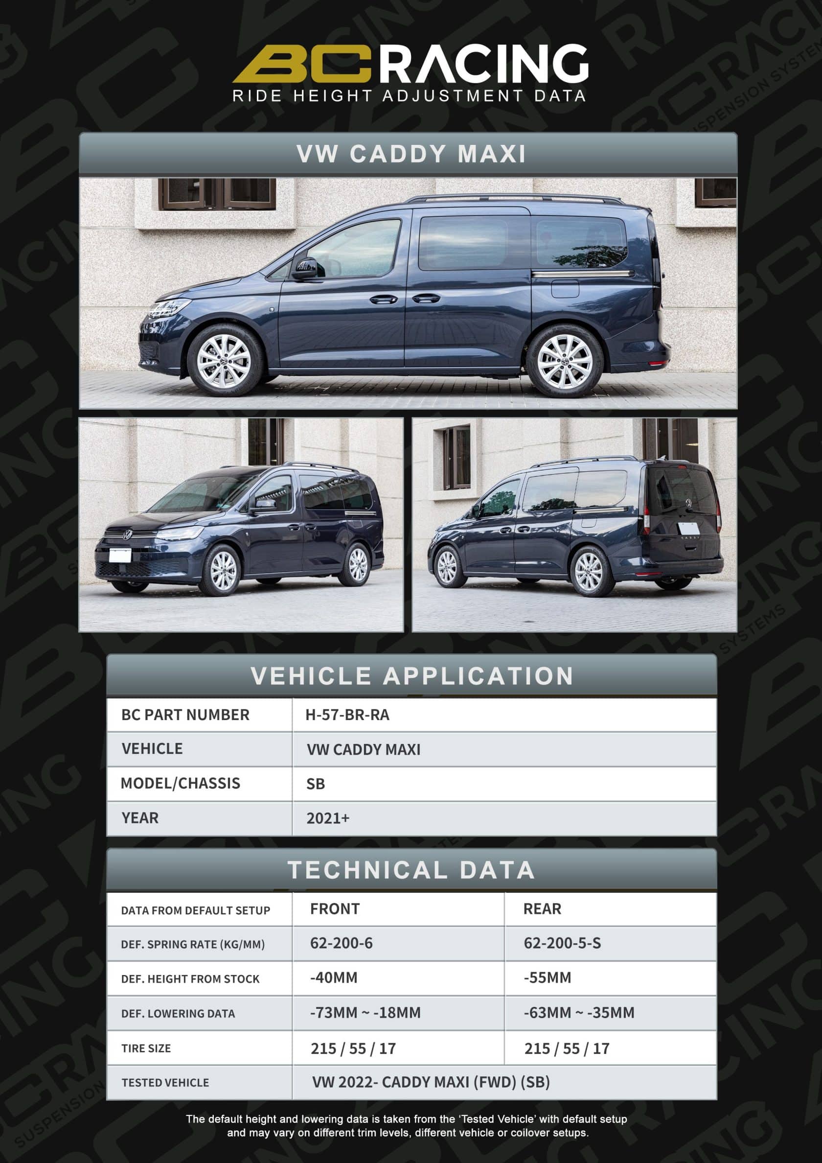 BC Racing BR RA Coilovers VW Caddy Cargo Maxi (Strut 54.5mm) FWD Sb (2021+) 6/4kg.mm