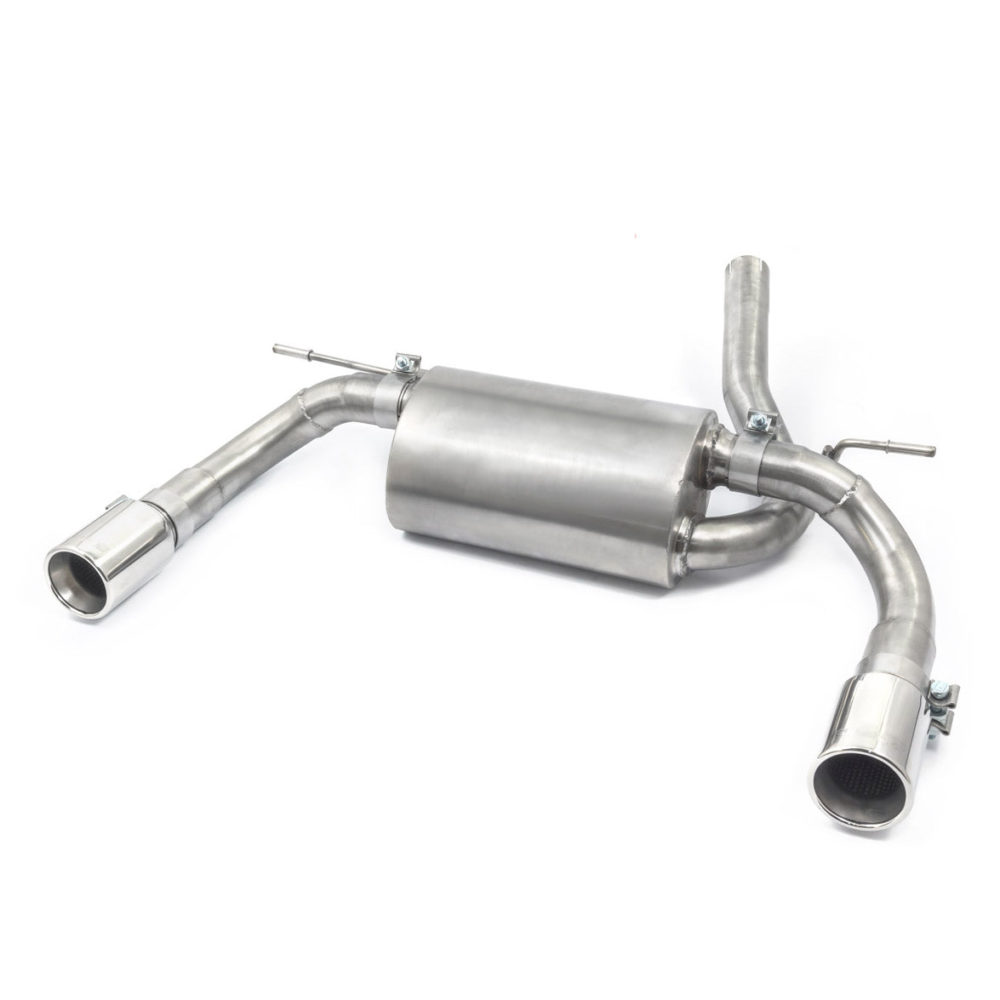 This BMW 420D performance exhaust is made in 2.25″/57.15mm pipework and fits from the centre section backwards replacing the standard rear section with dual exit tailpipes.