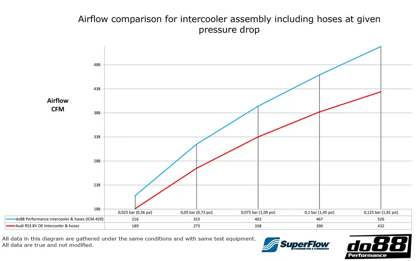 Engineered as a direct OEM replacement, our kit features a colossal 97mm thick core Intercooler, optimally rated by Garett for a staggering 1000hp! Experience a significant increase of power and torque, thanks to our design which ensures maximized air flow and remarkably cooler intake temperatures. Perfect for high performance and track cars, this kit is your ticket to true performance. Upgrade the performance of your Audi RS3 8V with the do88 performance intercooler Kit!