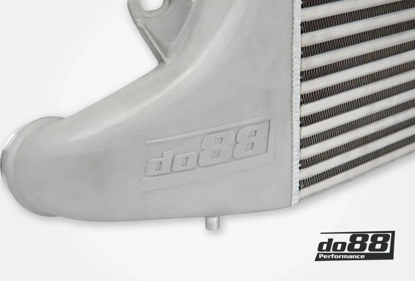 Our Intercooler core, designed by the esteemed Garrett Motorsport, utilizes advanced Aerospace technology. The densely packed, thin cooling fins builds the 97 mm (3 ¹³/₁₆”) thick core that offer efficient heat transfer, thereby ensuring optimal performance. The air flow over the core is efficiently distributed via our uniquely designed, free form cast end tanks. After many iterations of CFD-analysis, and 3D-printing, and flow bench tests we’ve perfected a design that offers maximum airflow. Form follows function here – our 80mm machined connections far exceed the OEM design, eliminating bottlenecks and allowing high power outputs. Based on our knowledge, we think do88 is the only brand that has gone above and beyond by enlarging the hose connections to eliminate those bottlenecks.