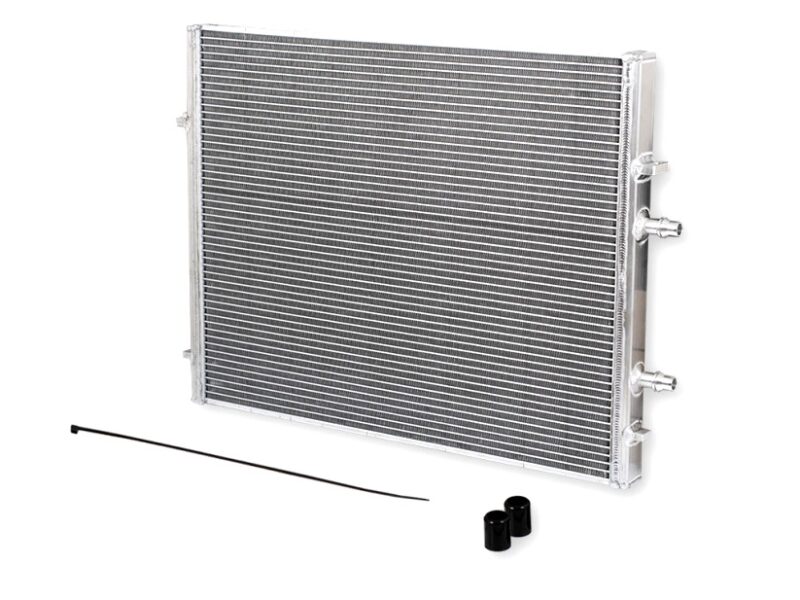 The S55 turbo engine that powers the BMW M2C / M3 / M4 F8X uses a Top mounted water-cooled intercooler instead of a “regular” air-cooled intercooler. The coolant in this system has its own separate cooling circuit combined of two parallel connected radiators and a pump. The larger one of these two parallel connected radiators is positioned in the front of the centre cooling module, the second smaller one is located in front of the right-side wheel arch. Reducing the water temperature in this circuit is directly equated with improved cooling of the charge air (lower IAT – Intake Air Temperature). Due to this reason, it is important to have high performance radiators in this system to maintain as low and stable IAT as possible during tough driving.
