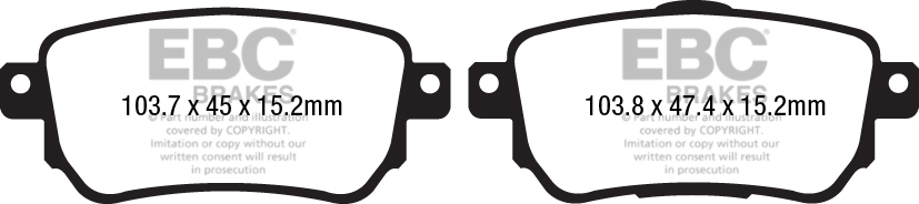 - Pad dimensions: 103.70 x 45.00 x 15.20mm / 103.80 x 47.40 x 15.20mm