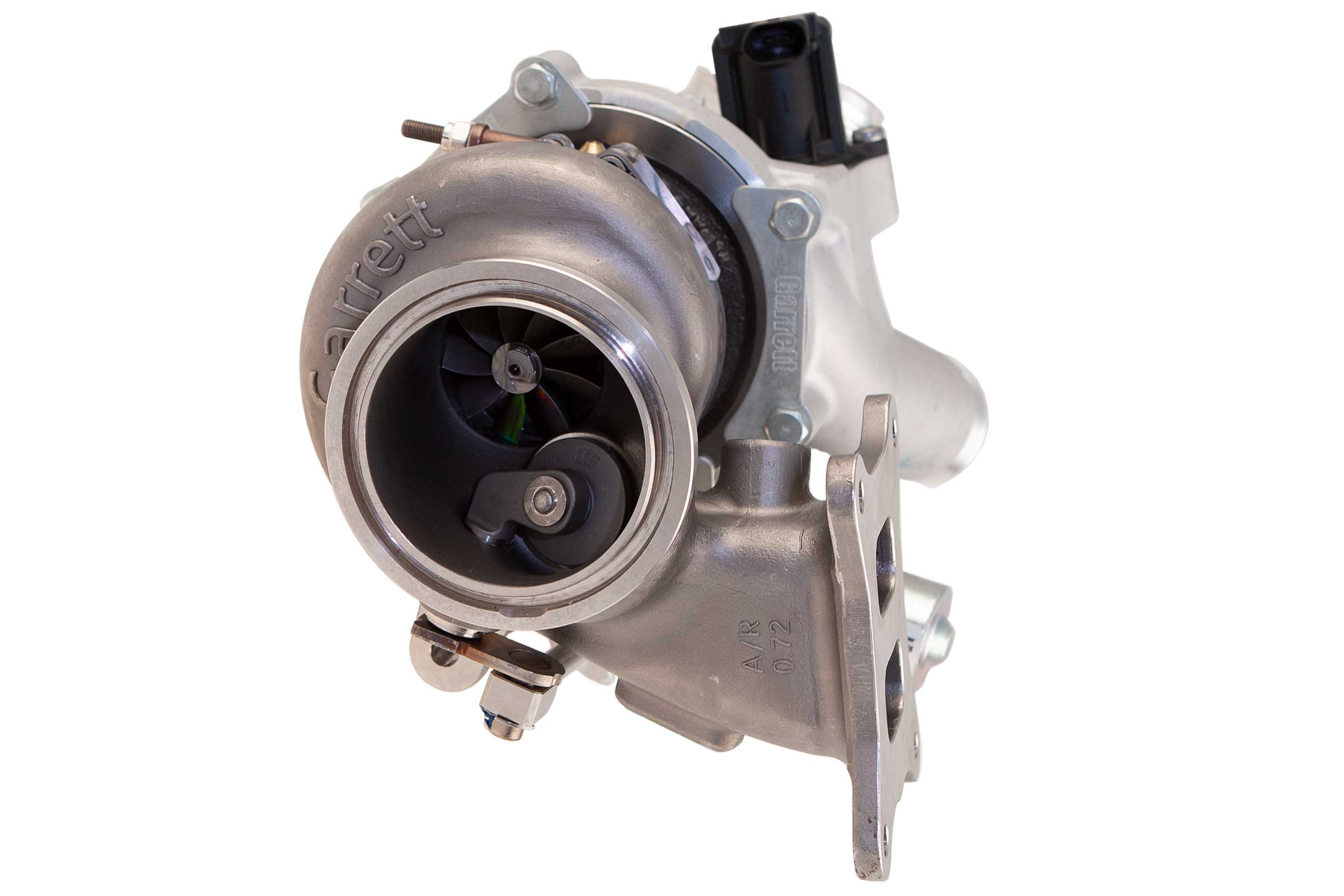 The exhaust housing boasts enhanced exhaust gas throughput, purpose-built for Garrett’s premium turbine assembly. Crafted from stainless steel capable of withstanding temperatures of 1050°C, the duct routing is optimized for performance and flow. An added benefit is the compatibility with all downpipes, ensuring a perfect fit with the exhaust housing outlet.