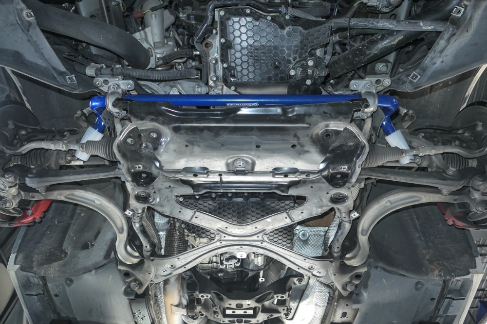 An anti-roll bar links the left and right suspension. When the car leans, it resists that movement. The result is sharper turn-in, more stable high-speed cornering, and a more predictable balance.