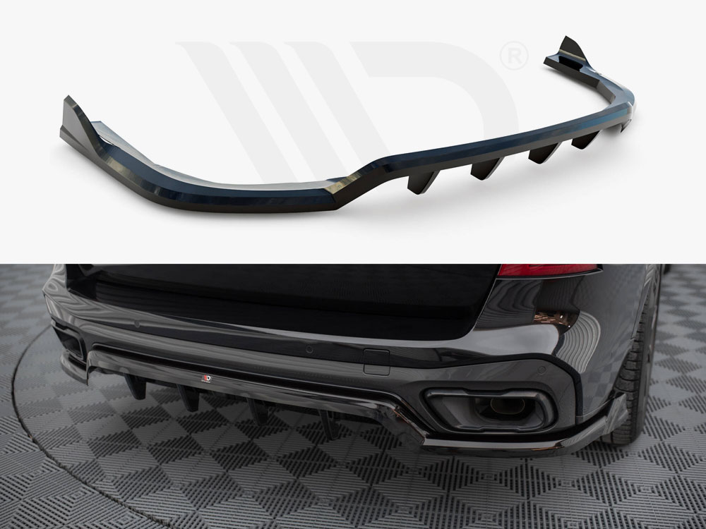 Enhance the rear styling of your BMW X5 M-Sport G05 with Maxton Design’s Central Rear Splitter featuring vertical bars. This product is specifically designed for vehicles equipped with the BMW M-Sport styling package and is compatible with a towbar.
