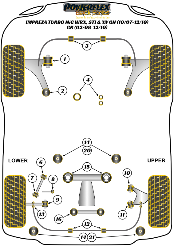- Any parts used for track/motorsport/competition purposes or part numbers ending ‘BLK’ are excluded from our Lifetime Warranty.