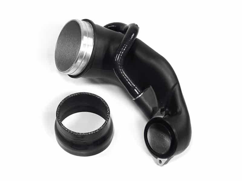 The 2.5 TFSI engine found in the RS3 8V.2 and TTRS 8S is capable of incredible power gains even with the stock turbocharger. Whilst the stock inlet is fine for stock power, once you start increasing this performance the stock inlet pipe becomes a restriction to airflow and holds back the potential gains. With the Revo turbocharger inlet pipe upgrade, you can achieve maximum performance, due to unique design features and Zirotec © heat-reflective coating. The Revo kit includes a silicone coupler from the inlet to fit onto the Revo Carbon Series Intake and a precision-machined turbo collar at the other end to match the inlet diameter of the stock turbocharger.