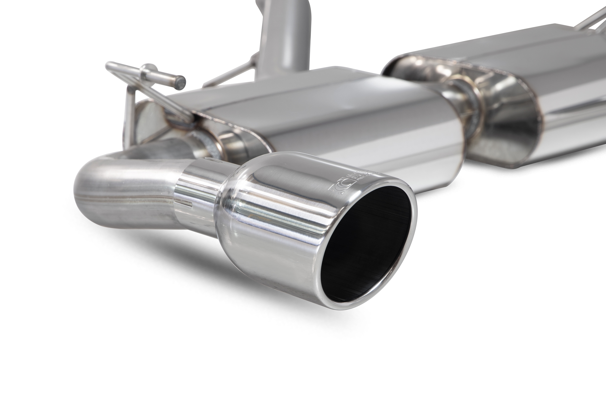 The Scorpion GPF-back Exhaust is equipped with 114mm Indy Tips, providing a stylish and aggressive look. Please note that there are options available for selecting different tips (trims) to suit your preferences.