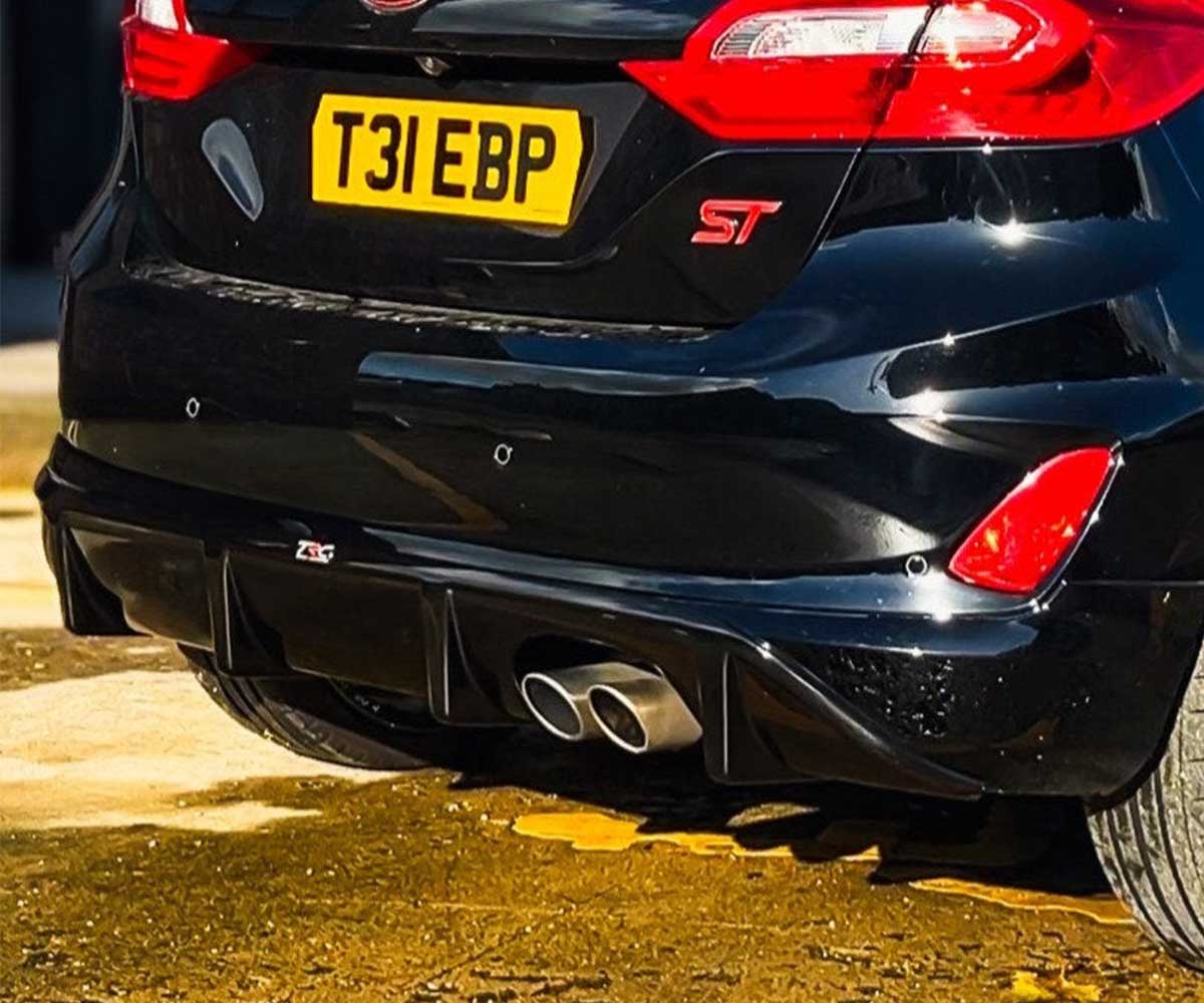 Designed to fit Ford Fiesta MK8/8.5 ST/ST-Line models from 2018 to 2024. It replaces the original rear diffuser section.