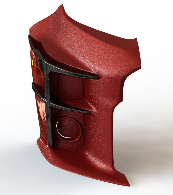 Each surround is manufactured from Nylon 12, a durable engineering plastic. It is strong, light and resistant to minor impacts and road debris. The parts are media blasted, which gives a consistent, satin style surface and helps paint adhere if you choose to have them colour coded by a body shop.