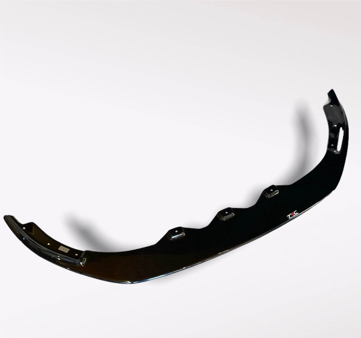 A front splitter sits at the bottom of the front bumper. It helps guide air around the car at speed and reduces some of the airflow going under the bumper. This can give a more planted feel on the road and a cleaner look at the front of the car.