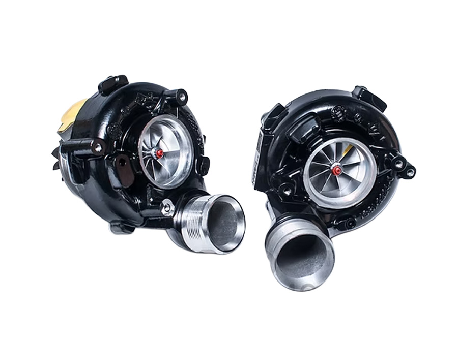- Enlarged billet compressor wheels – machined from solid and reinforced to manage higher boost pressure and airflow, supporting much higher power than stock.