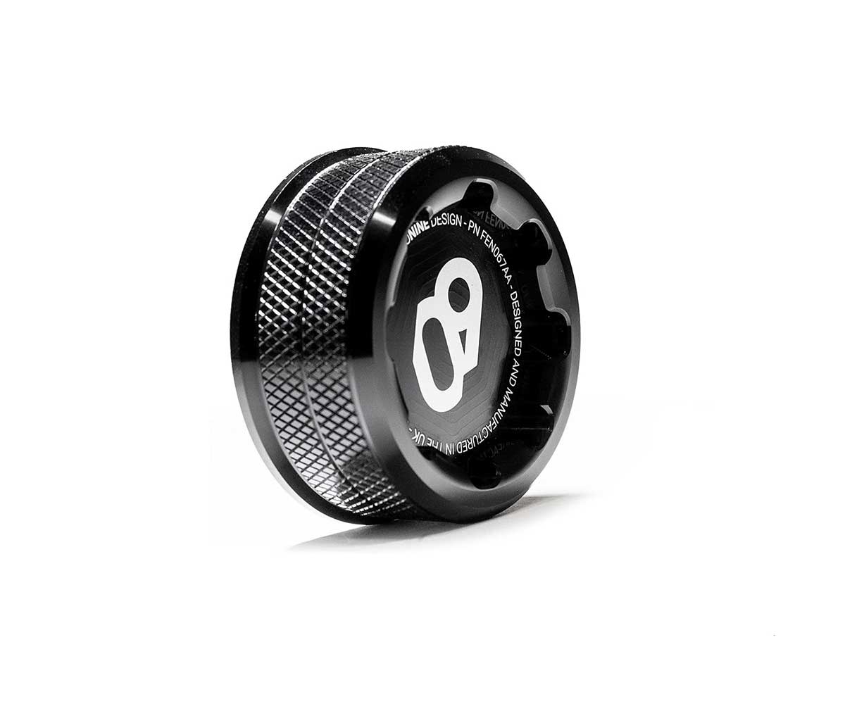 The ZERONINE Design Brake Fluid Cap is a direct replacement for the standard plastic brake fluid reservoir cap on a range of fast Ford models. It gives a neater under-bonnet look, with stronger materials and a more positive feel when you remove and refit it.